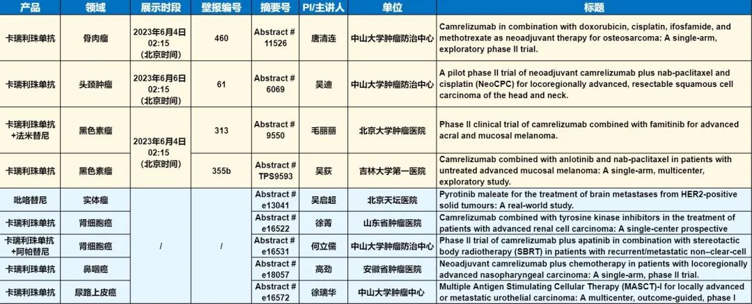 此外,在头颈肿瘤、黑色素瘤、骨肉瘤、鼻咽癌、肾细胞癌、尿路上皮癌等多个领域,卡瑞利珠单抗、吡咯替尼等产品相关研究一共入选了4项壁报展示和5项线上发表,彰显了利来国际真人娱乐医药强大的自主研发综合实力。