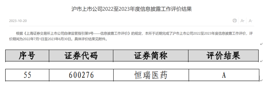 利来国际真人娱乐医药荣获上交所信息披露考评A级